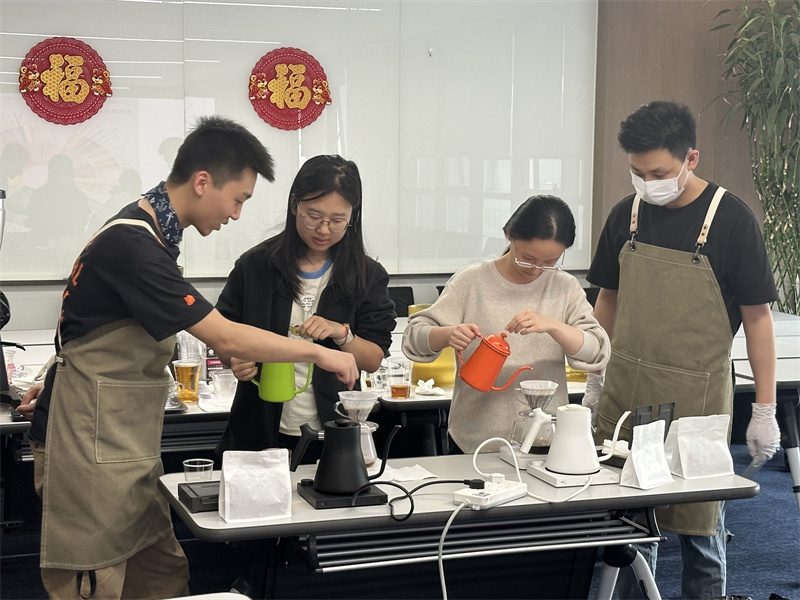 3月10日,中心邀请专业咖啡师介绍了咖啡的起源、分布、种类和特性等知识,并对日常生活中咖啡豆的选择、调配方法进行了讲解。大家在老师的指导下参与了手冲咖啡的制作过程,用心地制作了一杯属于自己的手冲咖啡,体会亲手冲制咖啡的乐趣。