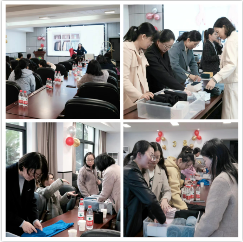 活动邀请了全屋空间规划师、高级衣橱管理师邹国琴为全体女职工开展题为“完美衣橱管理之轻松收纳”的现场培训。她从用对方法、选对工具、衣橱解析、整理流程、收纳实操等五个方面入手,结合大量衣橱收纳案例,展现从“找不到 易复乱”的无效整理到“看得见 找得到”的高效收纳,“能挂坚决不叠”的收纳理念深入人心。活动现场大家随机分组开展实操训练。
