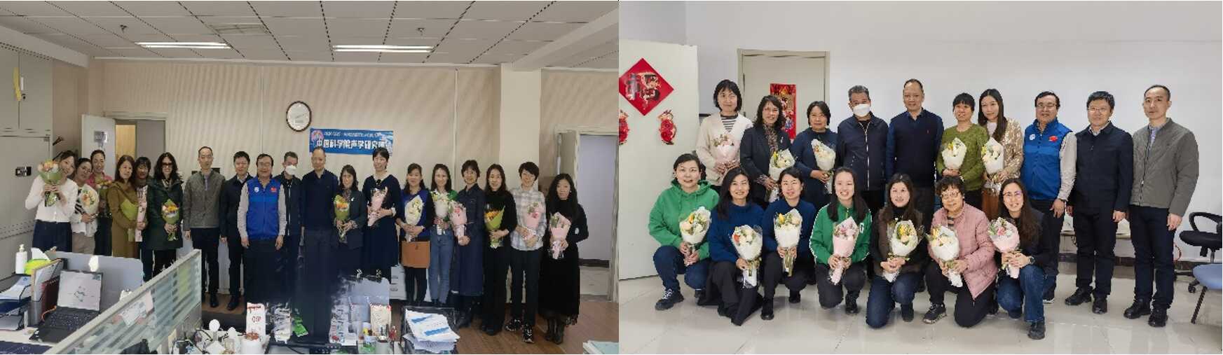 3月8日,各分工会还组织了各具特色的慰问和座谈活动。李风华所长与当日在所的所领导慰问了机关女职工,为她们献上鲜花,并向她们表达了节日的祝福。李风华鼓励大家在今后的工作中继续保持昂扬向上的精神风貌,巾帼不让须眉,为声学所的各项事业发展贡献自己的一份力量。各研究单元领导也举办了向女职工们暖心献花和交流座谈。