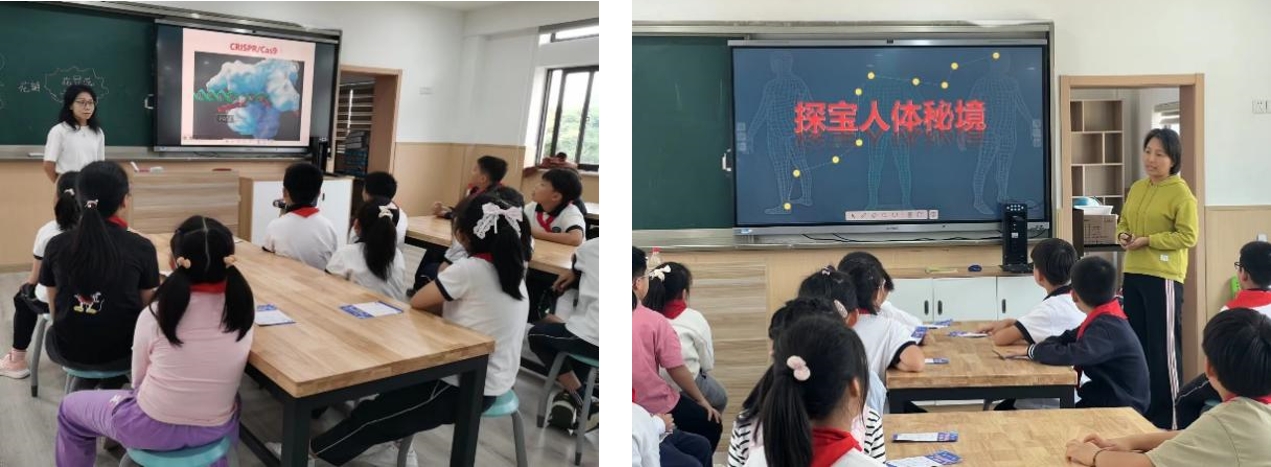 研究所妇委组建巾帼志愿队,由优秀的女青年科学家组成脑洞大开的科普团队,走进市二中学、建襄小学等中小学开展科普系列课程,“探宝人体秘境”系列课程还入驻徐汇区建襄小学少年宫选课平台。巾帼志愿队员们将高深的科学知识与趣味性兼容并蓄,结合科普小报告和科学小实验,并科普当前生命科学领域如何通过引入精密仪器、高速计算机、基因组大数据和跨学科交叉等前沿手段和理念来开展新型生命科学研究,在下一代的心中播撒科学种子,为提升公众科学素养贡献巾帼力量。