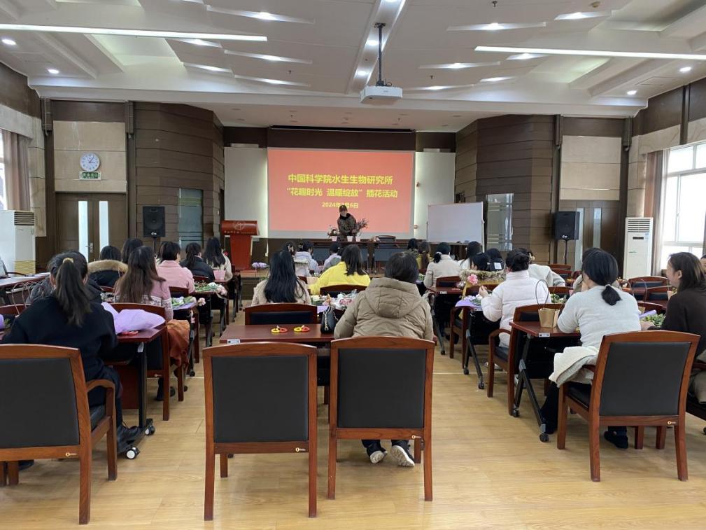 为纪念第114个“三八”国际劳动妇女节,动员广大女职工为加快抢占科技制高点再立新功,3月6日下午,中国科学院水生生物研究所举办“花趣时光 温暖绽放”插花活动。水生所党委副书记、纪委书记梁琼出席活动并致辞,她对所妇委会、女工委的辛勤工作表示感谢,对广大女同胞致以最诚挚的节日问候和衷心祝福。活动由党委办公室/纪监审办公室主任刘力主持,所内100余位女职工参加活动。