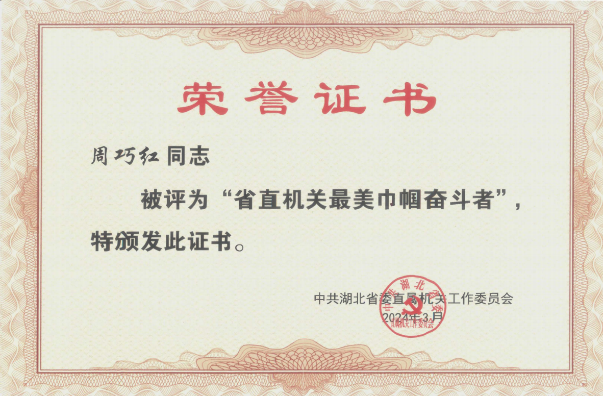 5.周巧红研究员被评为“省直机关最美巾帼奋斗者”