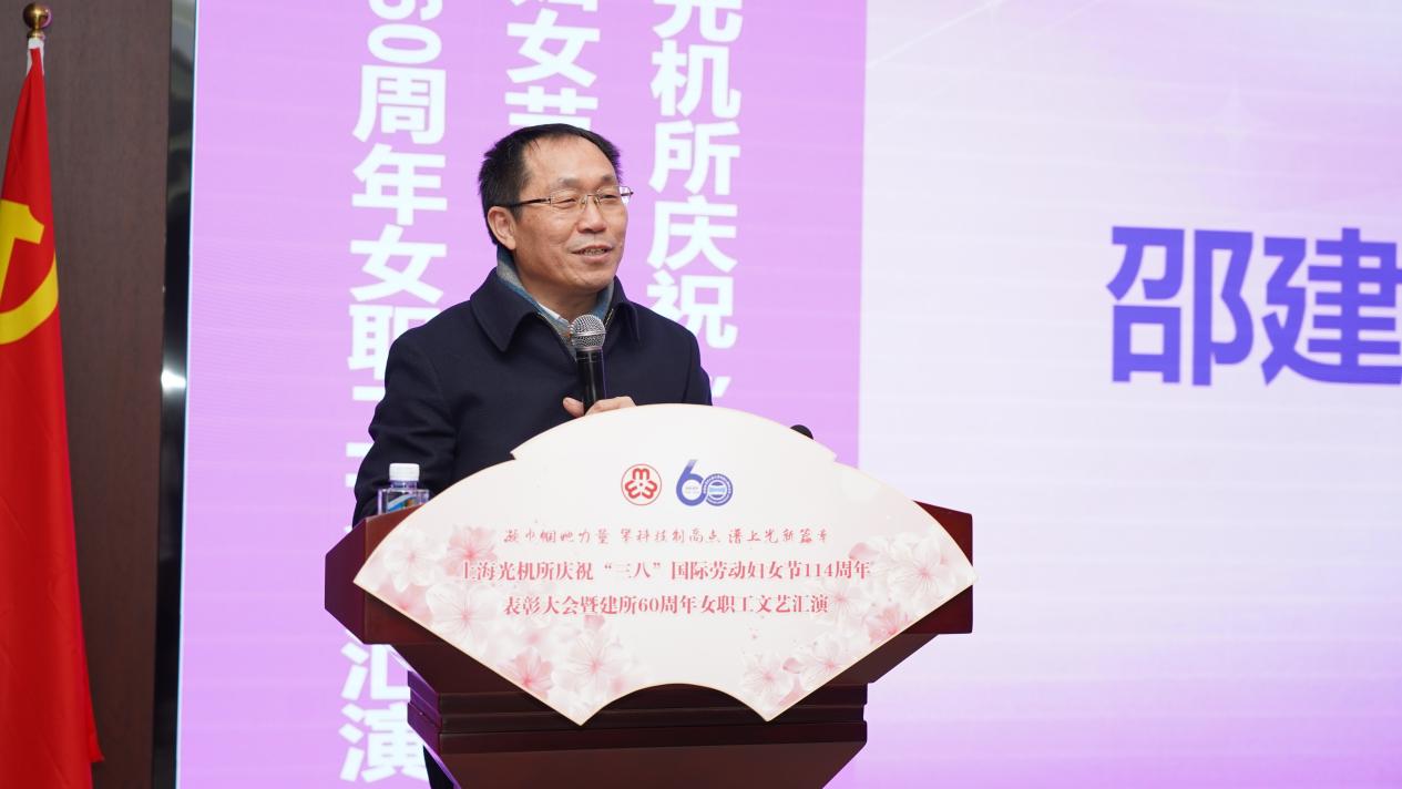 上海光机所党委书记邵建达致欢迎辞。他首先代表党政班子向各位来宾,全所女职工、女研究生致以诚挚的祝福和感谢。他表示上海光机所女性知识分子集中,在研究所60载的发展历程中,女性发挥了重要的、不可替代的作用,在重大科研成果中几乎都有女性作为研究工作的带头人、骨干和重要参与者,妇女已真正成为上海光机所不可或缺的“半边天”。 他希望大家要以先进为榜样,更好地展现担当作为,自尊自信、自立自强,在顽强奋斗中赢得出彩人生,共同谱写上海光机所新征程的崭新篇章!