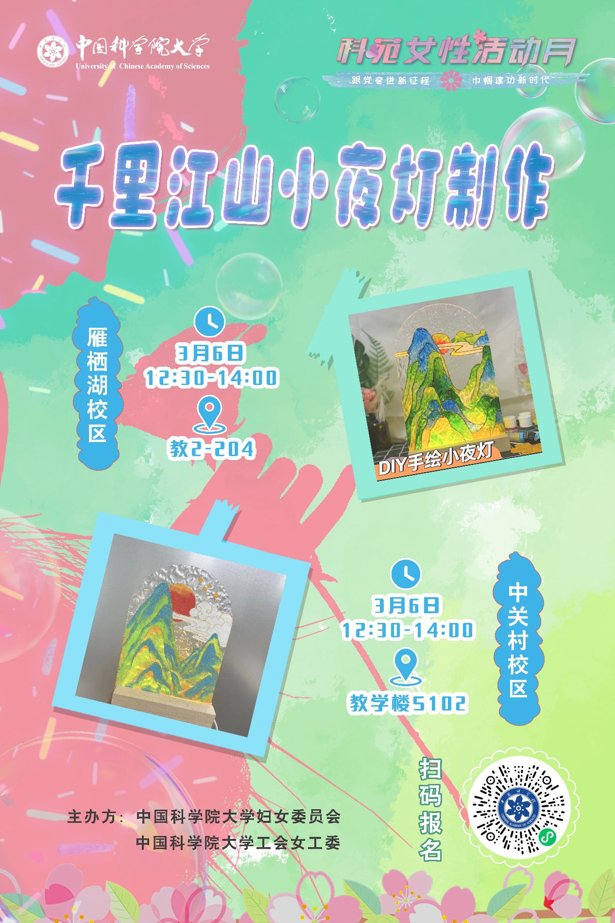 春和日丽三月天,为迎接第114个“三八”国际劳动妇女节,中国科学院大学妇女委员会、工会女职工委员会组织策划了包含手工、参观、讲座、观影在内的 “科苑女性活动月”系列活动。