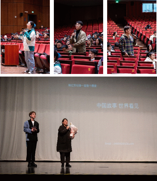 师生们静心沉浸于影片中,放映结束后,现场响起了热烈的掌声。柴导讲起拍摄中的故事:“2017年接到任务后跑了一百多个村庄,最终选择了沙瓦村,第一次没爬进村里,第二次爬了6小时才终于到达。在历时四年的拍摄过程中,拍摄团队与村民同吃同住,同样背着柴火爬着山”。当地村民们的生活、生产、教育等都异常艰难,路通的那晚,所有人泪如雨下,悬在心头的石头终于落下了。一步跨千年,一路抵人心,虽然村里的很多人一生都生活在大山中,但他们的子孙终于有机会走出去,看祖国更多的美景。