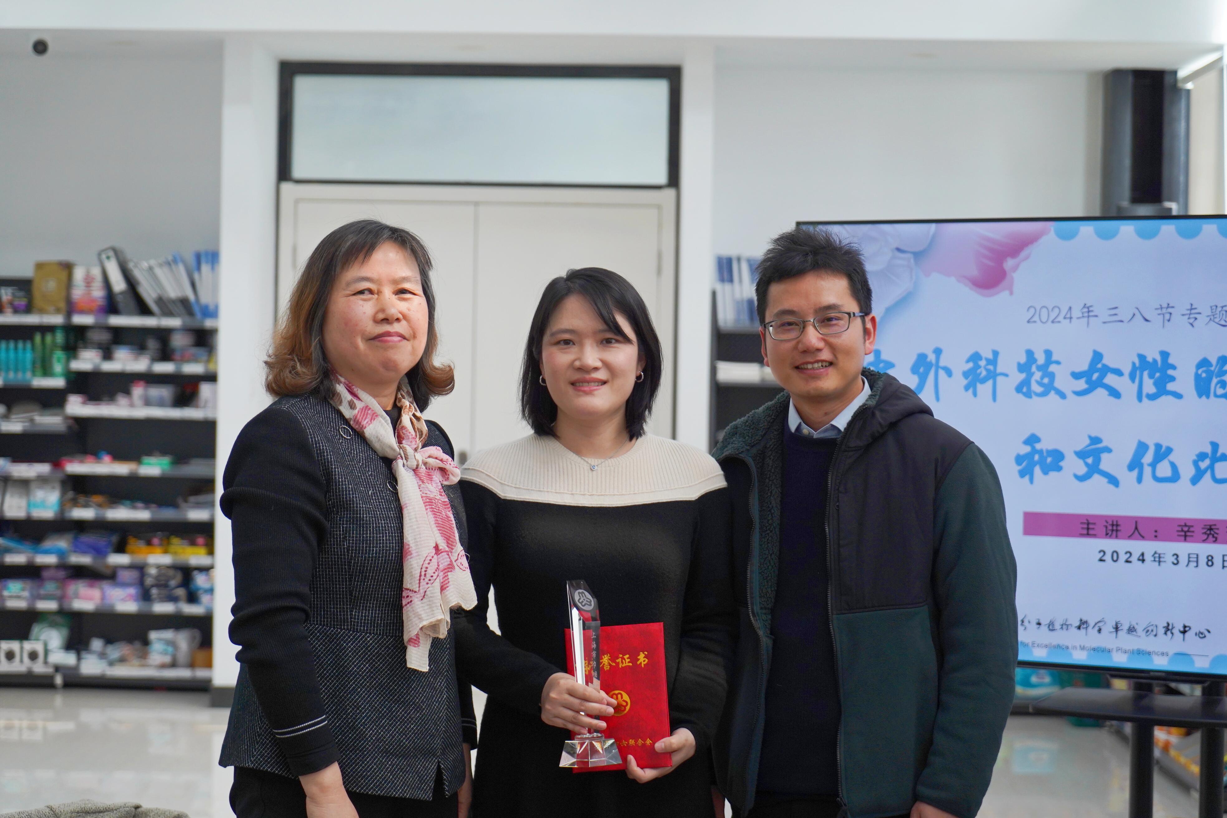 巾帼显担当,奋进绽芳华。值此“三八”国际妇女节来临之际,上海市妇女联合会、上海市总工会发布《关于命名2023年“上海市巾帼文明岗”“上海市巾帼建功标兵”的决定》,中心研究员、博士生导师辛秀芳荣获“2023年上海市巾帼建功标兵”称号。在今年三八节《中外科技女性的职业发展和文化比较》交流会上,中心党委副书记(主持工作)、副主任张余与中心妇委主任郑慧琼为辛秀芳研究员颁发了荣誉证书。