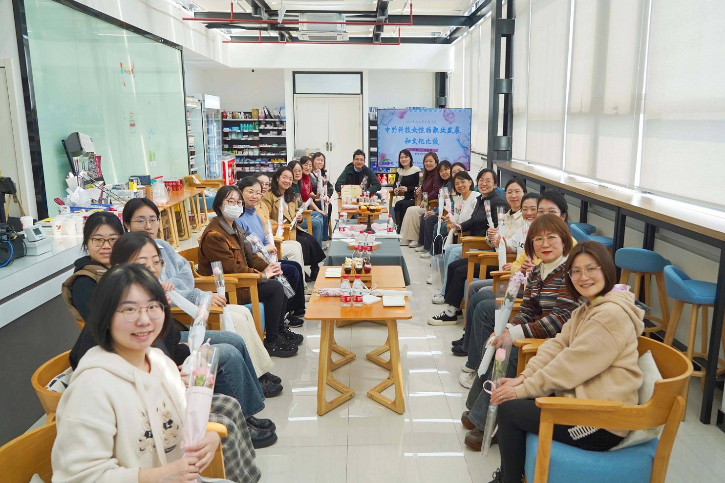 3月8日中午在枫林园区2号楼12楼,中心妇委邀请辛秀芳作了《中外科技女性的职业发展和文化比较》的交流分享会,结合自身经历分享科研体会和感悟,探讨国内外女科技工作者的现状和建议,对青年女科技工作者们给予鼓励和期望。中心党委副书记(主持工作)、副主任张余开场致辞,肯定了中心广大女同胞在过去一年为研究所的创新发展做出的积极贡献,向大家致以节日的问候和祝福。中心妇委主任郑慧琼、副主任鞠泓以及中心女职工到场参会。郑慧琼鼓励大家在自我成长的过程中要尽力找到自己的支撑点,珍惜和把握目前国内对于科技女性的支持政策。现场的女研究组长、女职工们相互交流。