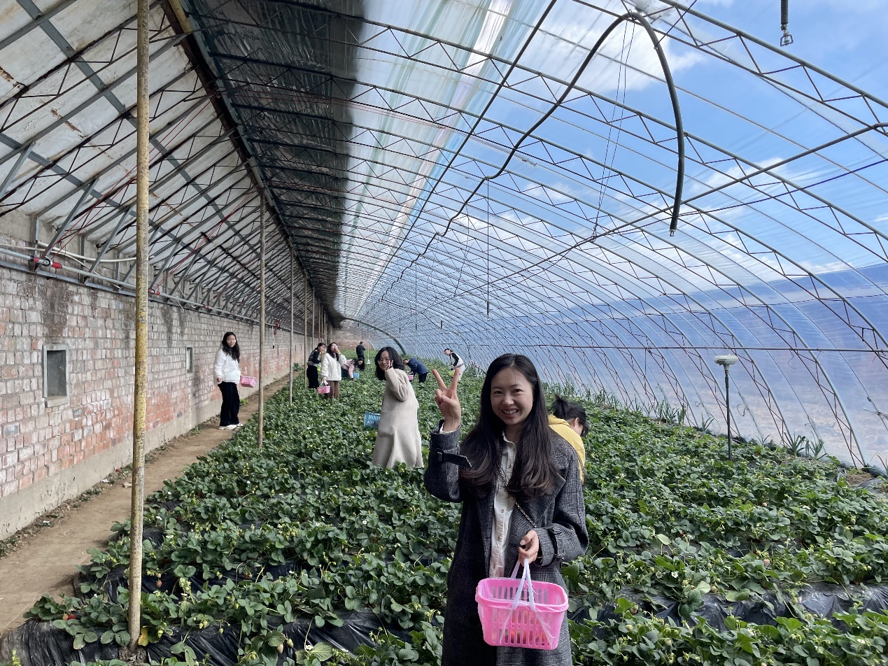参观之后,同学们来到了草莓园,蓝天白云、春日微风、友人相伴、果园飘香,同学们迫不及待地拿起篮子,开启了采摘草莓的欢乐时光。每一颗草莓都承载着农夫的辛勤劳动和大自然的馈赠。此次活动,大家在光影中感受了时代风华,在采摘中体悟了劳动精神。