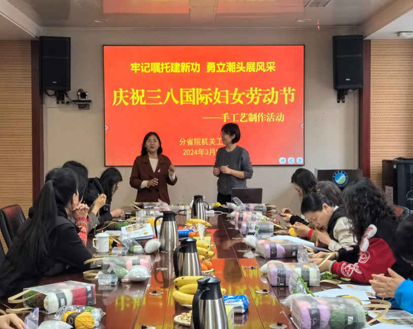为庆祝第114个“三八”国际劳动妇女节,3月6日至8日,分省院机关工会组织女干部职工开展“牢记嘱托建新功,勇立潮头展风采”手工艺制作活动。春和景明,万物昭苏。