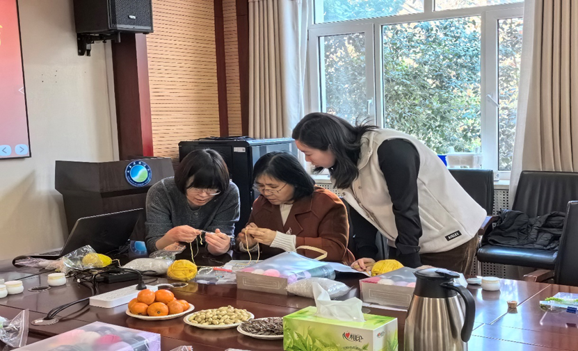 在活动中,大家纷纷动手勾织喜欢的花样,有人为手指的笨拙懊恼不已,有人为勾出一个花瓣而欢欣雀跃,有人唤醒了织毛衣的美好记忆……现场洋溢着一片欢声笑语。此时,她们不仅仅是母亲、妻子和默默服务科研的工作者,更是全神贯注追逐指尖乐趣的女神,用灵巧的手指勾勒出一枝枝美丽纷呈的花朵。