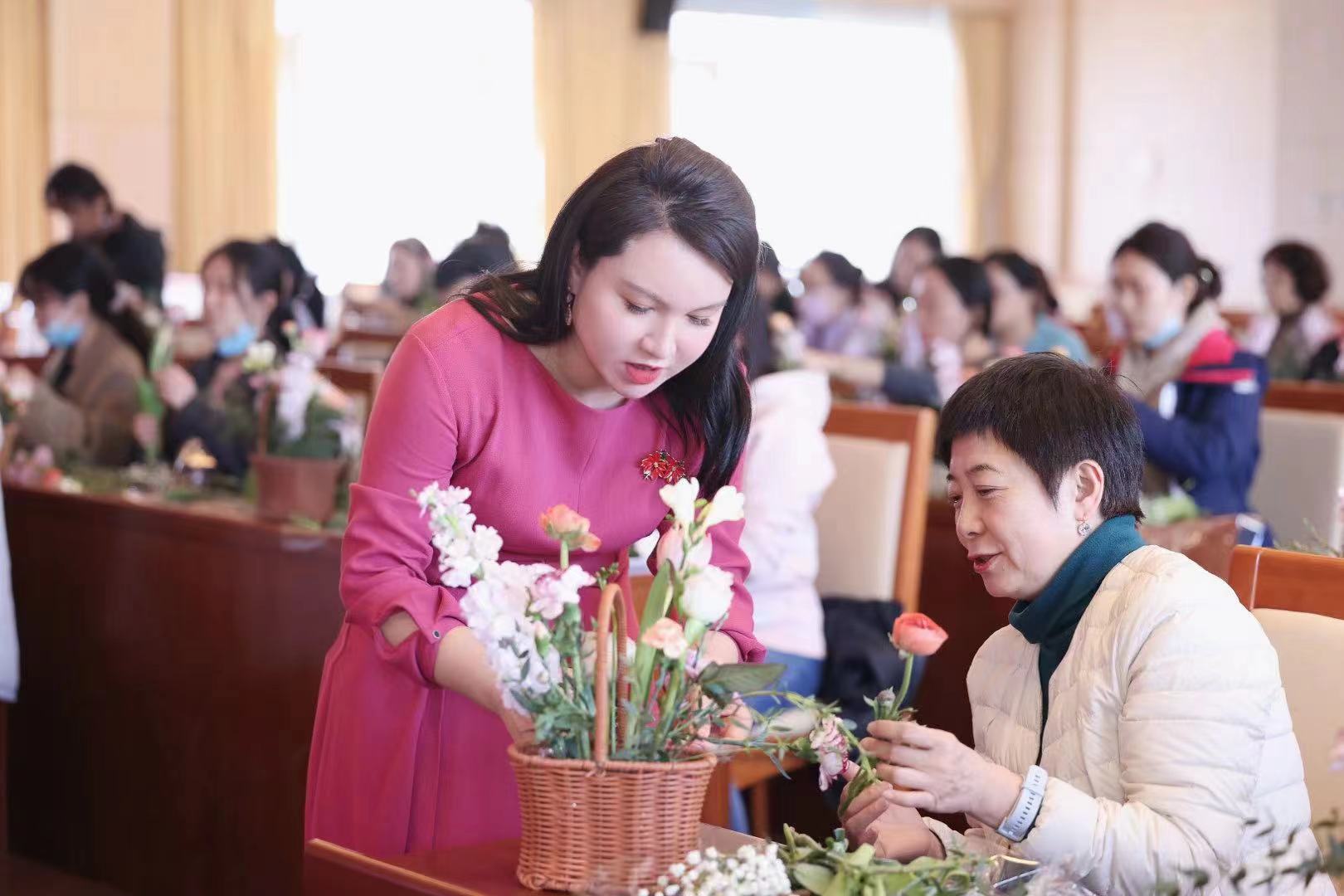 在花香缭绕的鲜花中,参加活动的女同胞们度过了一个愉快的时光,大家通过花艺展现了作为新时代女性的优雅和美丽。