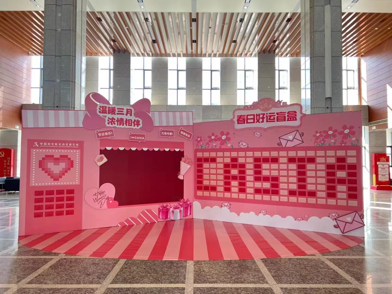 3月8日中午,自动化所工会、妇委会组织开展“温暖三月 浓情相伴”活动,女职工可以在指定区域留言打卡,送上对研究所的祝福或者许下自己的小心愿。打卡成功后,可随机抽取一封信封盲盒,每个盲盒中都隐藏着惊喜小礼物和精美文案,一句句温暖且充满力量的话语让每一位女职工收获了满满的幸福与感动。