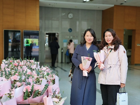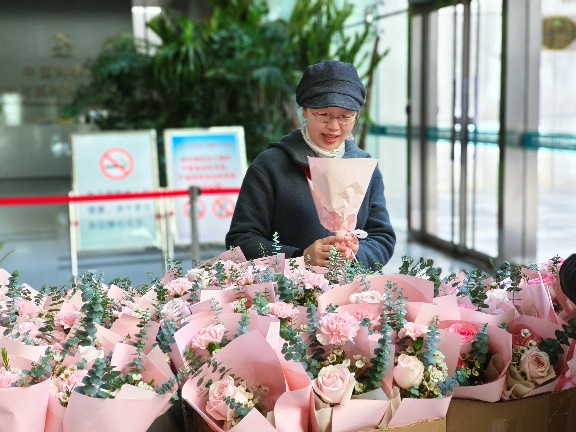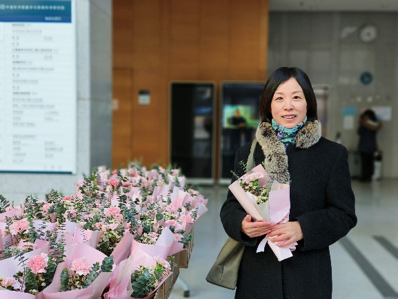 为激发女职工们爱岗敬业的工作热情,提升数学院职工的幸福感和归属感,3月8日当天一早,数学院妇委会联合工会组织活动,在办公楼门口迎接每一位女职工,并为每人送上了一份温馨的礼物——一束鲜花和一盆多肉绿植,在清晨的第一缕阳光中为女职工们送上了暖心的祝福。一朵朵芬芳的鲜花,一句句温馨的话语,充分表达了对女职工的关爱,这些鲜花不仅是对女职工的赞美,更是对她们辛勤工作的感谢。同时,本次活动也为男职工们准备了鲜花,鼓励他们回家送给母亲和爱人,感谢她们的辛劳和对我们工作的支持。收到鲜花和祝福后,大家的喜悦之情尽显脸上,大厅里四处弥漫着淡淡的花香,办公楼里充满了温情与欢乐,大家在鲜花的陪伴中度过了一个芬芳的节日。