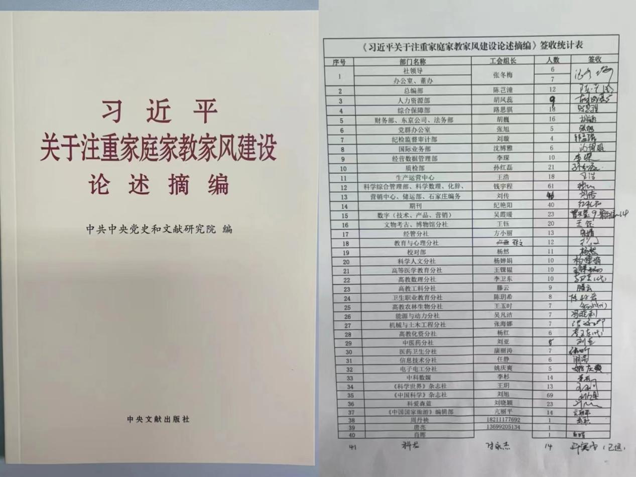 深入学习领会习近平总书记关于注重家庭家教家风建设的重要论述,为全体工会会员发放《习近平关于注重家庭家教家风建设论述摘编》一书。