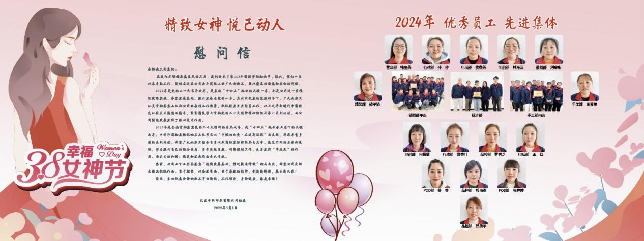 一、3月8日通过宣传栏向全体女职工发慰问信并对2023年度的21名优秀女员工和3个先进集体进行宣传。