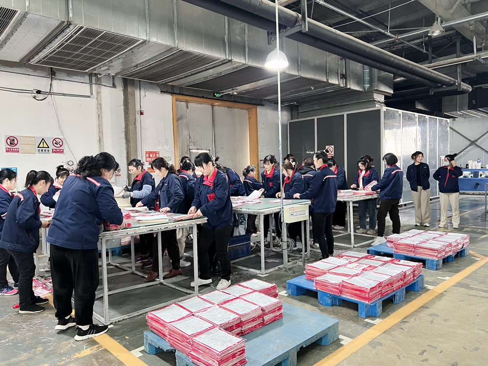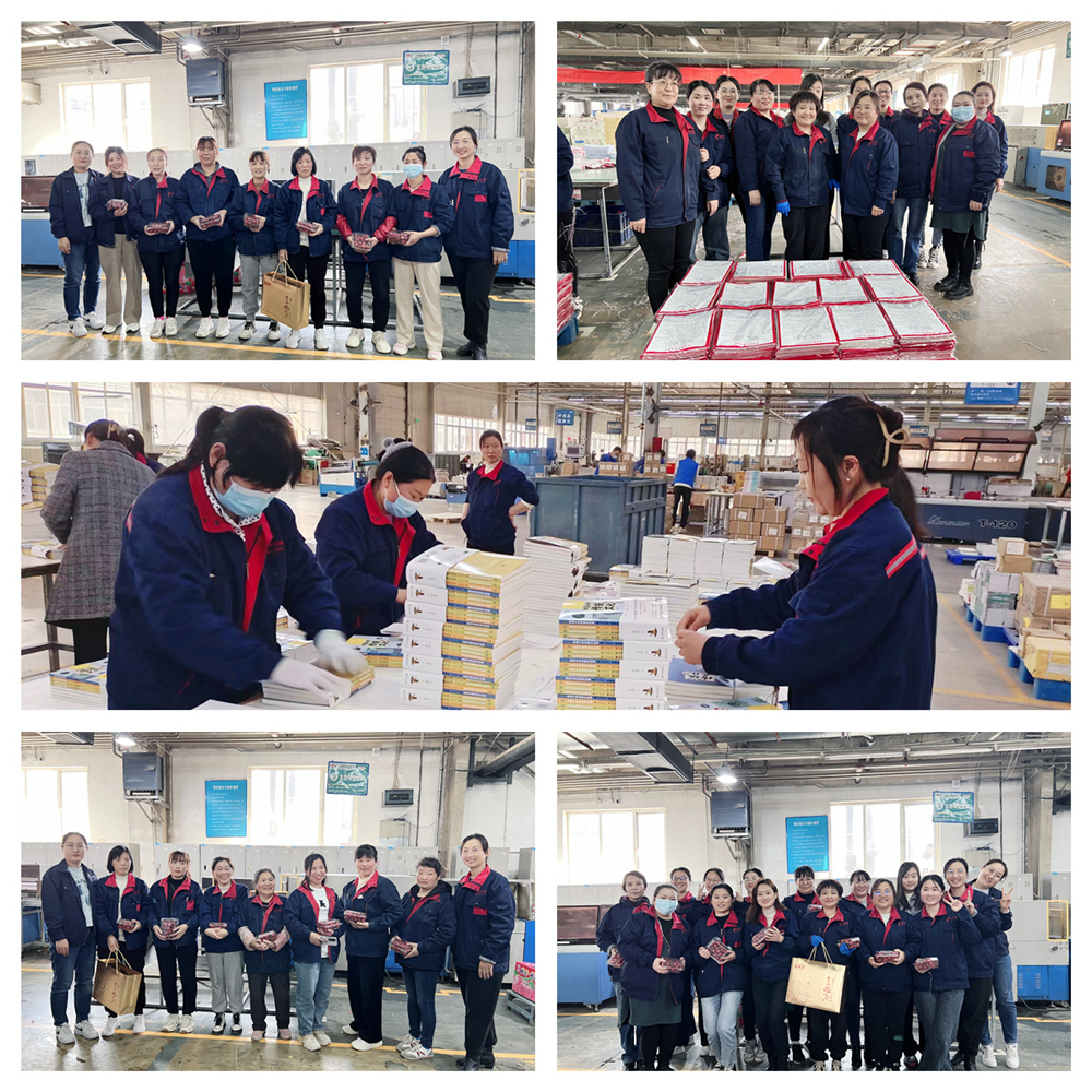 二、3月28日组织开展“奋斗·巾帼逐梦”女职工劳动技能竞赛活动,共有150余名女职工参与,根据生产安排在车间进行手工劳动技能比拼活动,每组6人,大家分工协作在规定时间内完成书籍的配套和分装,最后整齐码台。活动中大家有说有笑,团结一致共同努力完成目标,同时抓拍了最美劳动瞬间及合照,大力宣传中科印刷女性拼搏进取、勇于担当、恪尽职守、默默奉献的事迹和风貌,带动广大女职工见贤思齐、比学赶超、再建新功,激发广大女职工立足岗位创佳绩的荣誉感。