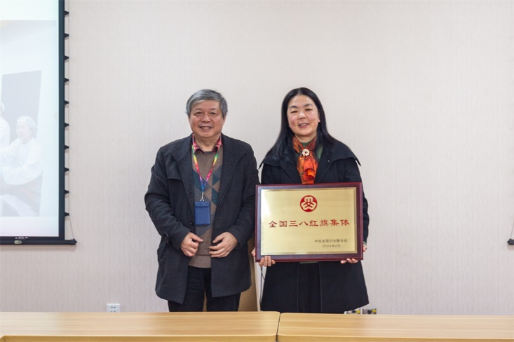 龚海梅为工程三室高轨红外探测集体(全国三八红旗集体)颁奖