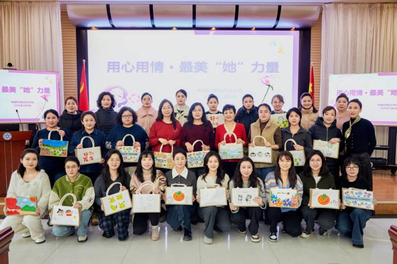 3月6日下午,兰州分院机关开展用心用情·最美“她”力量活动,组织在职女职工、工会女会员绘制非遗手绘帆布包,并拍摄精美工作照、形象照。兰州分院分党组成员、副院长赵培庆出席活动并致辞,他代表分院分党组对全体女同胞们寄予期望,希望她们继续发扬“自尊、自信、自立、自强”的精神,在全力支撑保障抢占科技制高点的征途中勇挑重担、奋发有为,为推动兰州分院系统高质量发展再立新功、再创佳绩。