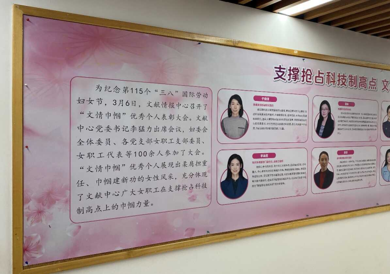表彰大会后,文献中心党委还为“文情巾帼”优秀个人的事迹和成果制作了专门宣传栏,向广大职工广泛宣传。