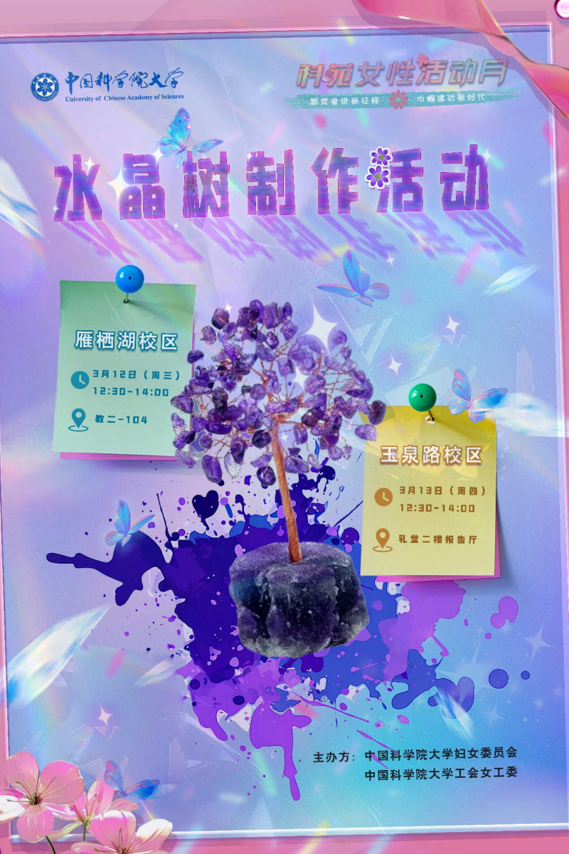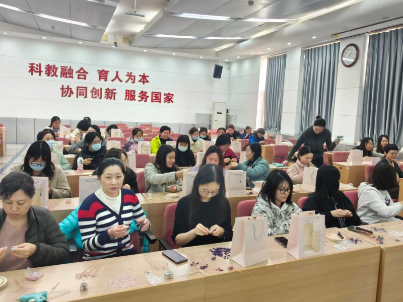 3月12-13日,水晶树制作活动在雁栖湖、玉泉路校区分别开展,300余名女教职工参加了活动,以手工艺创作献礼节日。