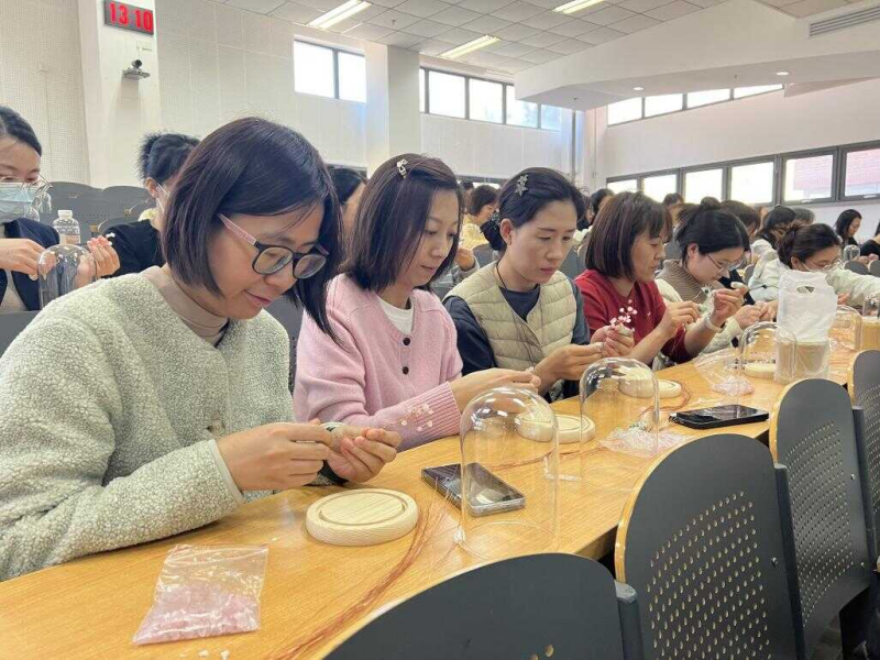 水晶树绽放的晶莹光泽,是女职工们在繁忙工作中寻得的心灵憩园。这场手工盛宴让节日祝福化作具象的温度,既释放了教学和管理的压力,更以艺术创作重塑了职业女性的精神图景。