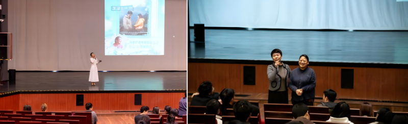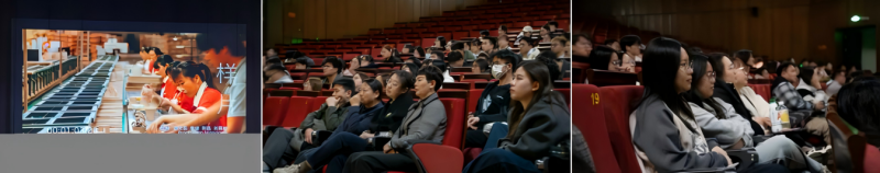 观影结束后,柴红芳导演分享了影片拍摄背后的故事,并回答了同学们关于角色选择、城乡议题以及创作历程的提问。提到为何选择瓷器厂作为拍摄场景之一,柴导表示,瓷器厂不仅是中国制造的象征,也是中国传统文化的重要组成部分。她希望通过这一场景,讲述中国制造背后的故事,展现普通工人在现代化进程中的努力与坚持。柴导还分享了与纪录片主人公建立信任的过程,为了真实记录他们的生活,她与主人公们同吃同住,甚至一起干活,逐渐赢得了他们的信任。这种深入的参与让她能够捕捉到最真实的情感与细节,也让影片更加贴近生活、打动人心。此外,柴导鼓励现代年轻人勇敢去追求爱情,现代的婚恋观与过去已然不同,年轻人们在优渥的生活中无忧无虑,对婚恋问题不甚重视。她表示,人生需要在生命中、完整中、温暖中、困难中前行。爱情是人生的重要组成部分,尽管现实中有许多挑战,但每个人都应该勇敢地去追求自己的幸福,在生活的起伏中找到属于自己的答案。