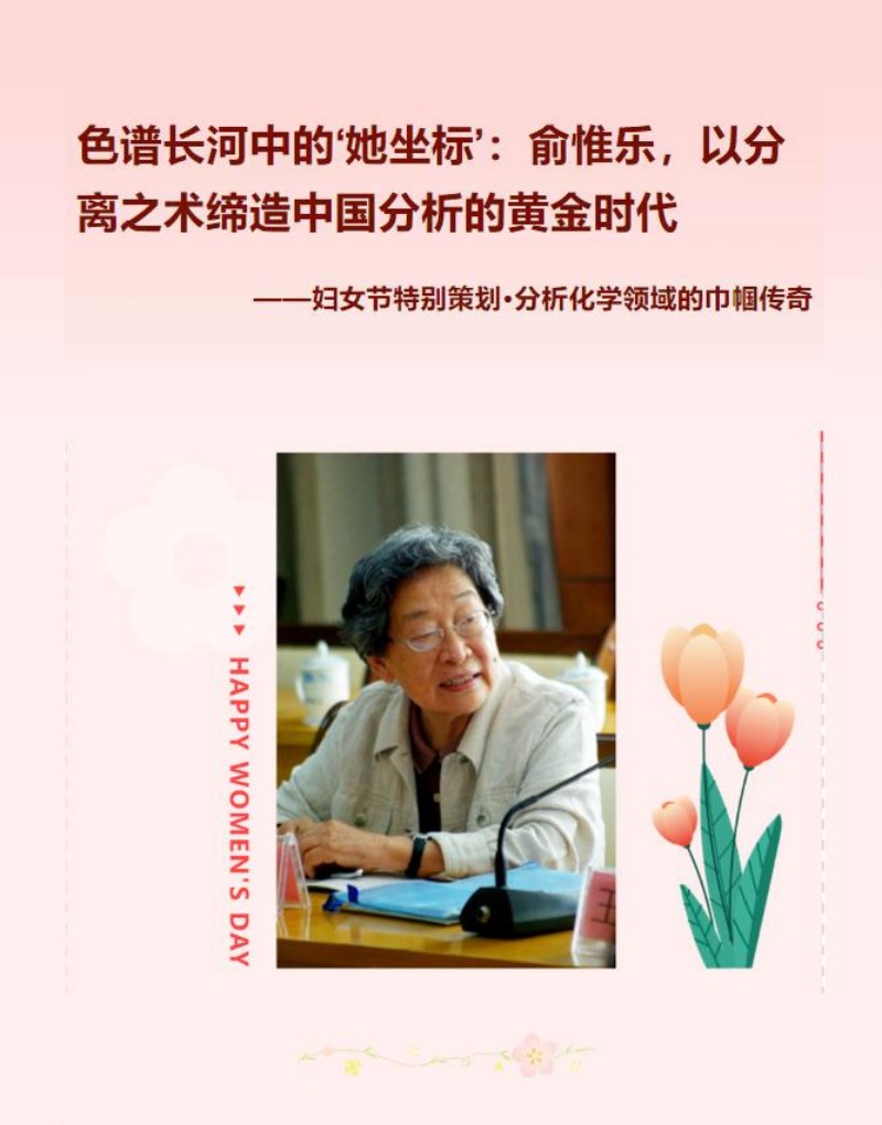 3月8日,研究所《分析测试技术与仪器》期刊微信公众号策划了俞惟乐先生特别报道。俞惟乐,分析化学家,长期从事色谱领域的研究工作,是我国分析化学学科的开拓者之一和学术带头人之一,也是《分析测试技术与仪器》期刊的创刊主编。在她的领导下研制出了中国第一代毛细管色谱柱,为中国气相色谱的发展和普及起到了推动作用,她用一生诠释了科学家精神(宣传链接:https://mp.weixin.qq.com/s/tgJmE_hiiQDkjIq-GLo7Jg)。