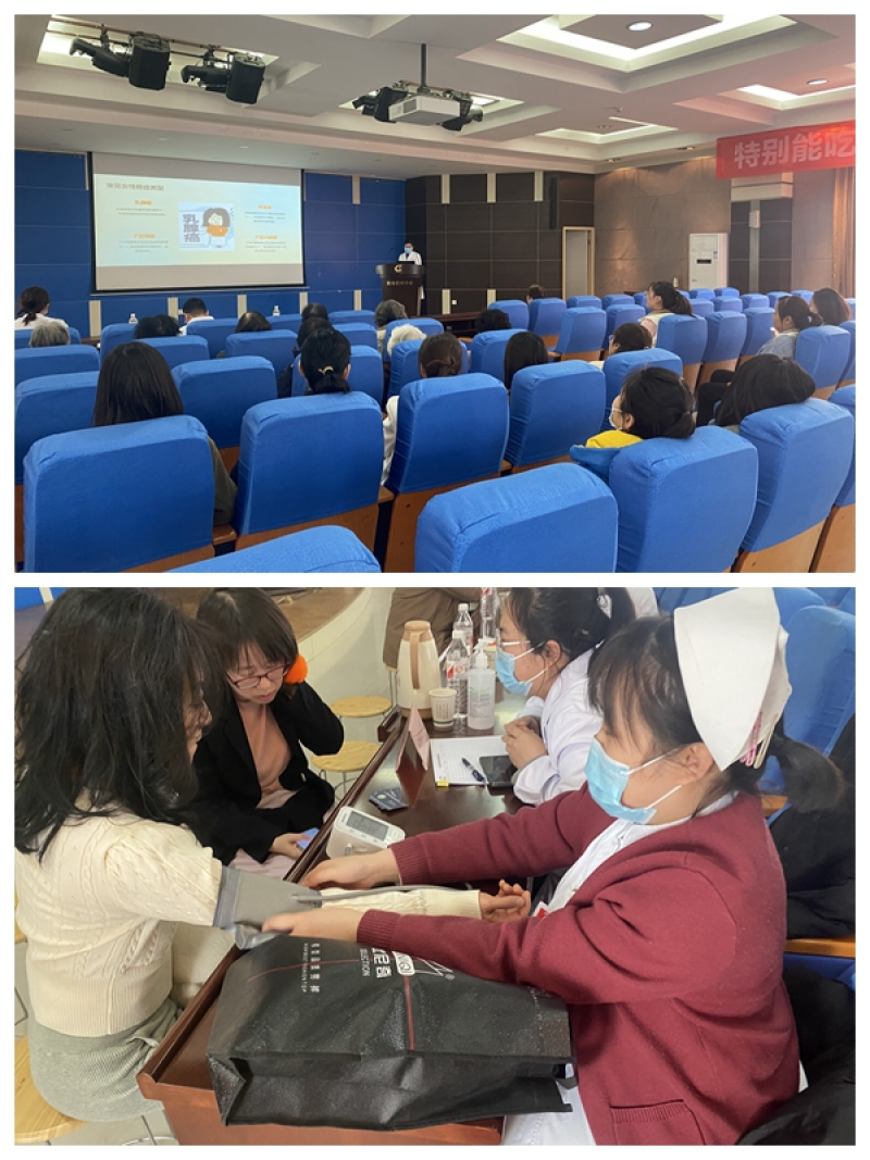 5.举办女性健康知识讲座和义诊活动。3月18日,女工委组织了一场集知识讲座与义诊服务于一体的活动,邀请西安秦皇医院医护团队,为女职工带来健康关怀。讲座围绕女性常见疾病的预防、诊断与治疗,以及日常保健等方面展开,从生理健康到心理健康,进行了详细、生动的讲解。随后,包括妇产科、皮肤科、内分泌科、心血管内科等多个科室经验丰富的医护人员为女职工们提供了免费的健康咨询、初步诊断和检查服务。