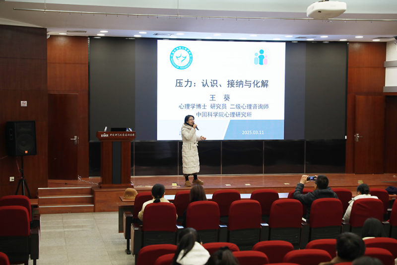 王葵研究员以《压力:认识、接纳与化解》为题,从科学视角拆解压力本质,围绕如何接纳并化解工作、家庭和生活带来的压力等方面进行了生动而详细的讲述。她通过独特的视角诠释了压力产生的原因,解析了职业成功、拥有金钱与幸福感的关系,以生动的例子剖析了如何以顺应人性的方式消除压力、如何快乐科研、如何更容易获得幸福。活动的最后,她与现场观众进行了互动交流,耐心解答大家遇到的困惑,活动取得了预期效果。