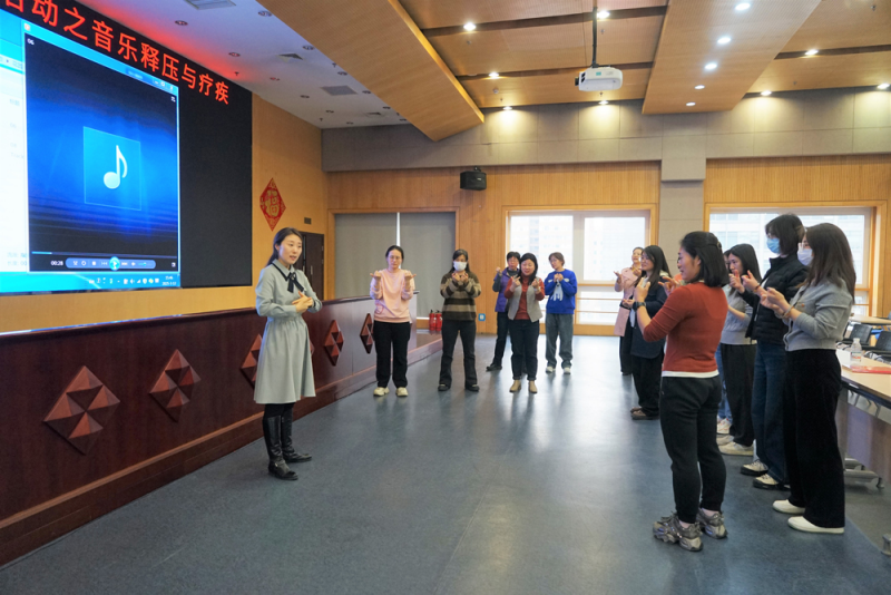 刘欢首先带领大家进行了一场音乐放松冥想,帮助释放压力和负面情绪;再用女职工们喜欢的音乐作诊,解读其当下的身心状态;而后深入浅出地讲解了音乐与情绪的关系;还提供了自我音乐疗愈的实操方法;最后,大家还尝试了音乐舞动练习。讲座在欢乐治愈的互动氛围中圆满结束。女职工们纷纷表示为科研工作注入了新的活力!