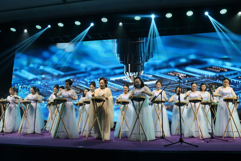 此外,所工会组织别具匠心的空灵鼓表演《我和我的祖国》也赢得了全场观众的阵阵掌声,表演者通过深情的演绎,将空灵鼓的悠扬音色与科技报国之心巧妙结合,展现了女性科技工作者在严谨科研之外的艺术才华与多面魅力。