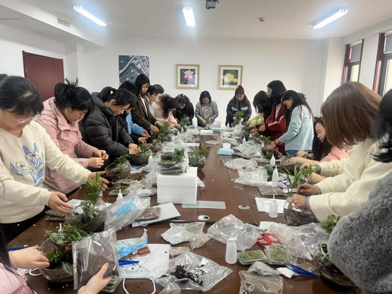在“植物工坊”活动现场,科普老师首先为大家讲解了绿植微景观的制作技巧和养护知识,并现场演示了如何将苔藓、多肉等植物与各种装饰物巧妙搭配,打造出独具匠心的迷你花园。在老师的指导下,女职工们充分发挥想象力和创造力,用心制作属于自己的微型景观。一盆盆错落有致、生机盎然的绿植微景观在大家的巧手中诞生,有的清新淡雅,有的活泼可爱,有的充满童趣,充分展现了女职工们的心灵手巧和对美好生活的热爱。活动现场欢声笑语不断,大家互相交流制作心得,分享创作喜悦。
