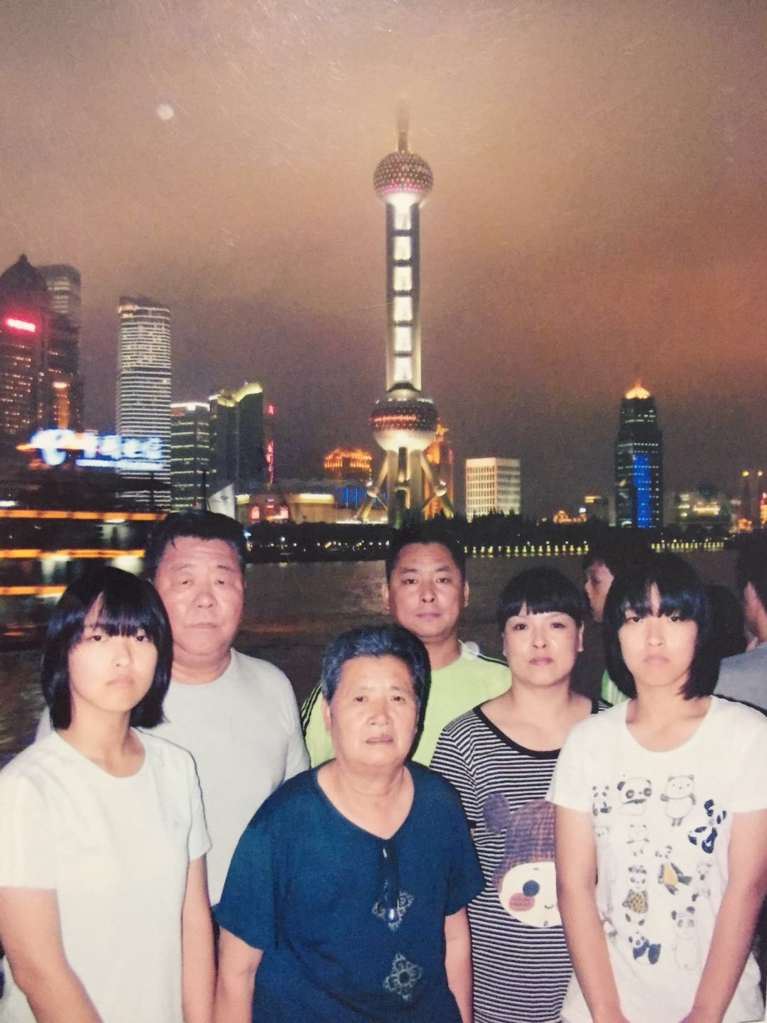 日,紧张的高考结束后,全家(爷爷、奶奶、爸爸、妈妈、妹妹)去上海游玩。