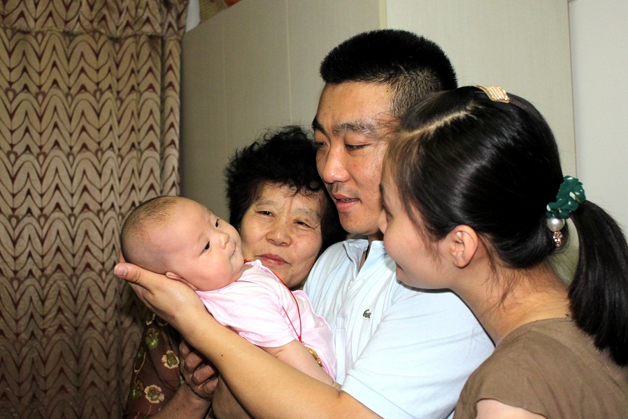 2013年,女儿出生满百天,父母从山东老家来京探望,母亲第一眼看到孙女时的神情,被一旁的父亲抓拍下来,女儿、媳妇、母亲第一次同框出镜,十分感动。我当时把这张照片发到了新浪微博上,题曰:生命中最重要的三个女人,以表达内心难以抑制的激动和感恩。