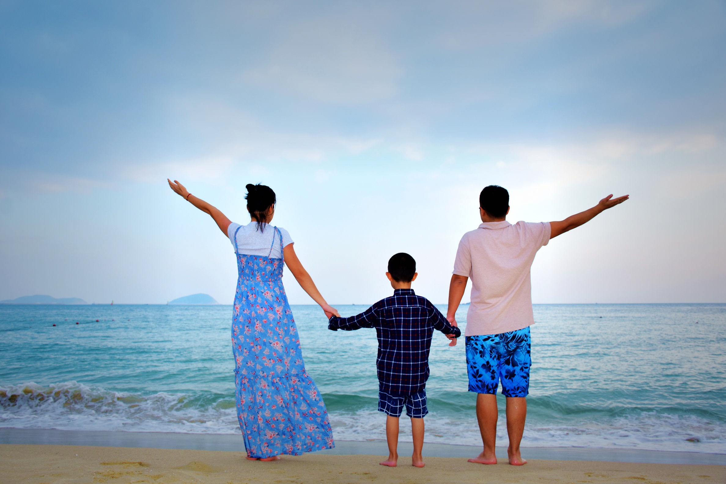 家是最小国,国是千万家,一家人迎着海边和煦明媚的阳光,踏着轻柔细软的沙子,温润的海风拂过脸颊,享受着大海的磅礴旖旎,也祝愿千万家幸福安康。