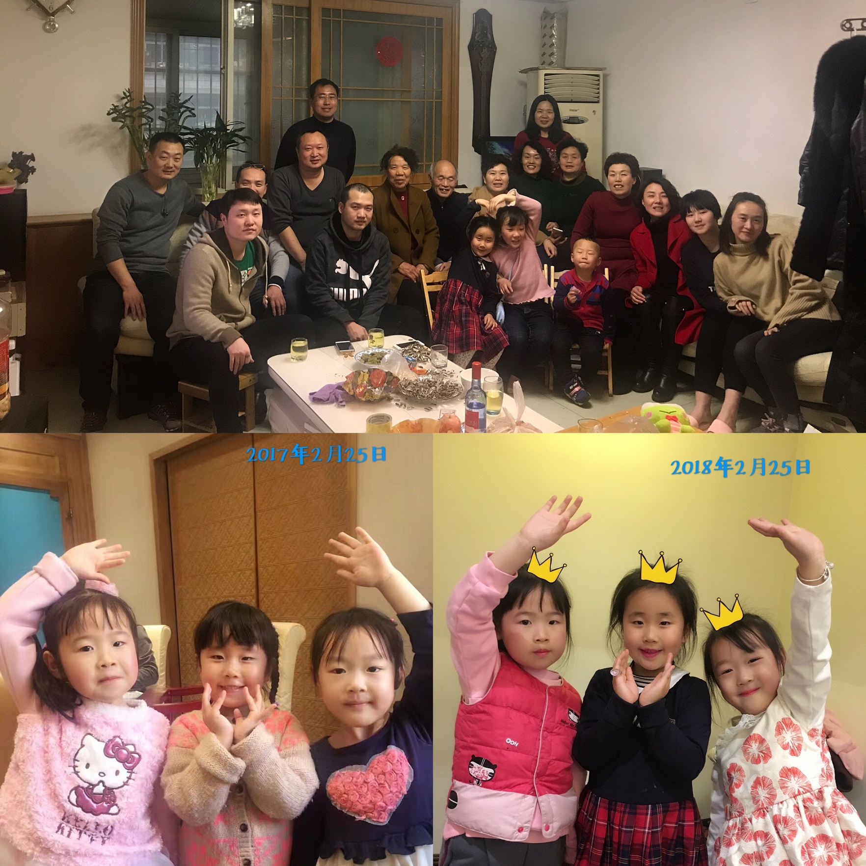 2018年春节,我们小家三口回洛阳过年,跟着爸爸妈妈去姑姑家与亲戚们聚会。期间,第三代的三个小公主在2017年和2018年的同一天里摆出同样的pos拍照留念。