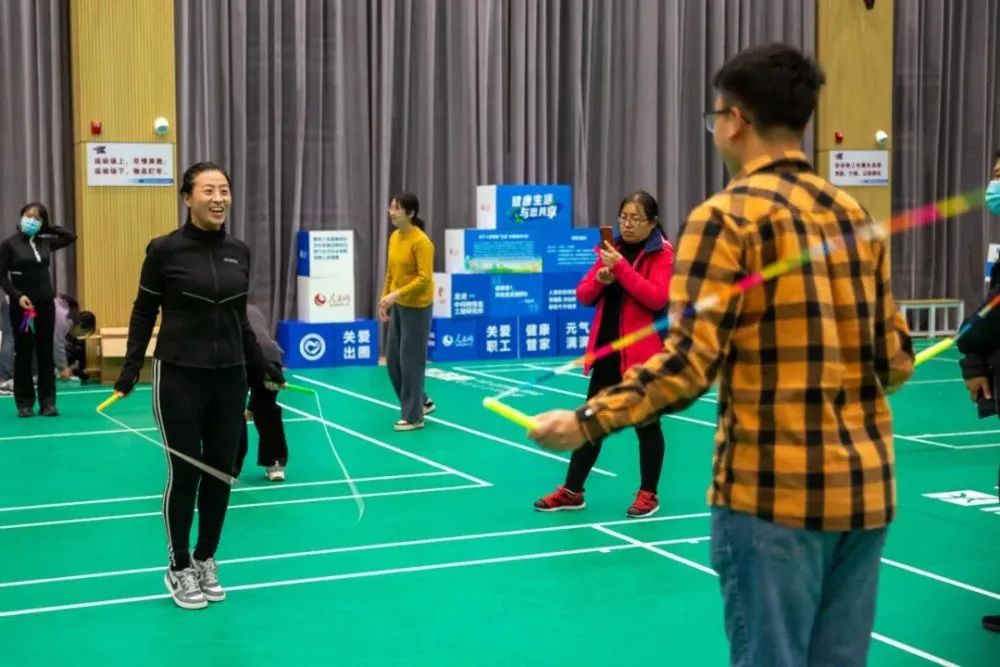 科学健身互动体验环节配备了飞盘掷准、毽球、跳绳、呼啦圈、弹力棒、波速球等运动器材,国家体育总局社体中心还特别邀请了国家级社会体育指导员和国家级教练员来到现场,指导大家科学参与健身活动,同时还为参与者准备了健身促健康大礼包。