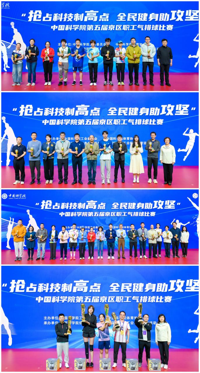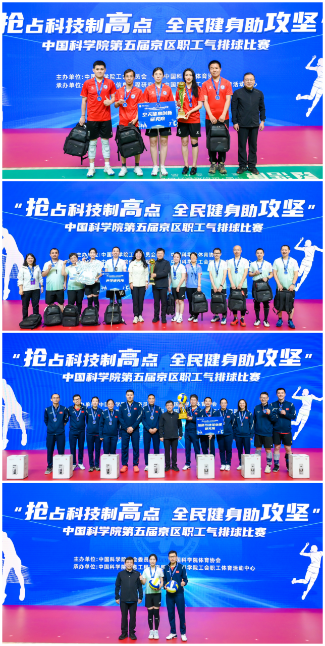 经过一天半的激烈角逐,地质地球所代表队荣获冠军、声学所代表队荣获亚军、空天院代表队荣获季军,力学所、国科大、地理资源所、自动化所、心理所等代表队荣获第4-8名,数学院等20支代表队荣获“优秀组织奖”,理论物理所等20支代表队荣获“体育道德风尚奖”。