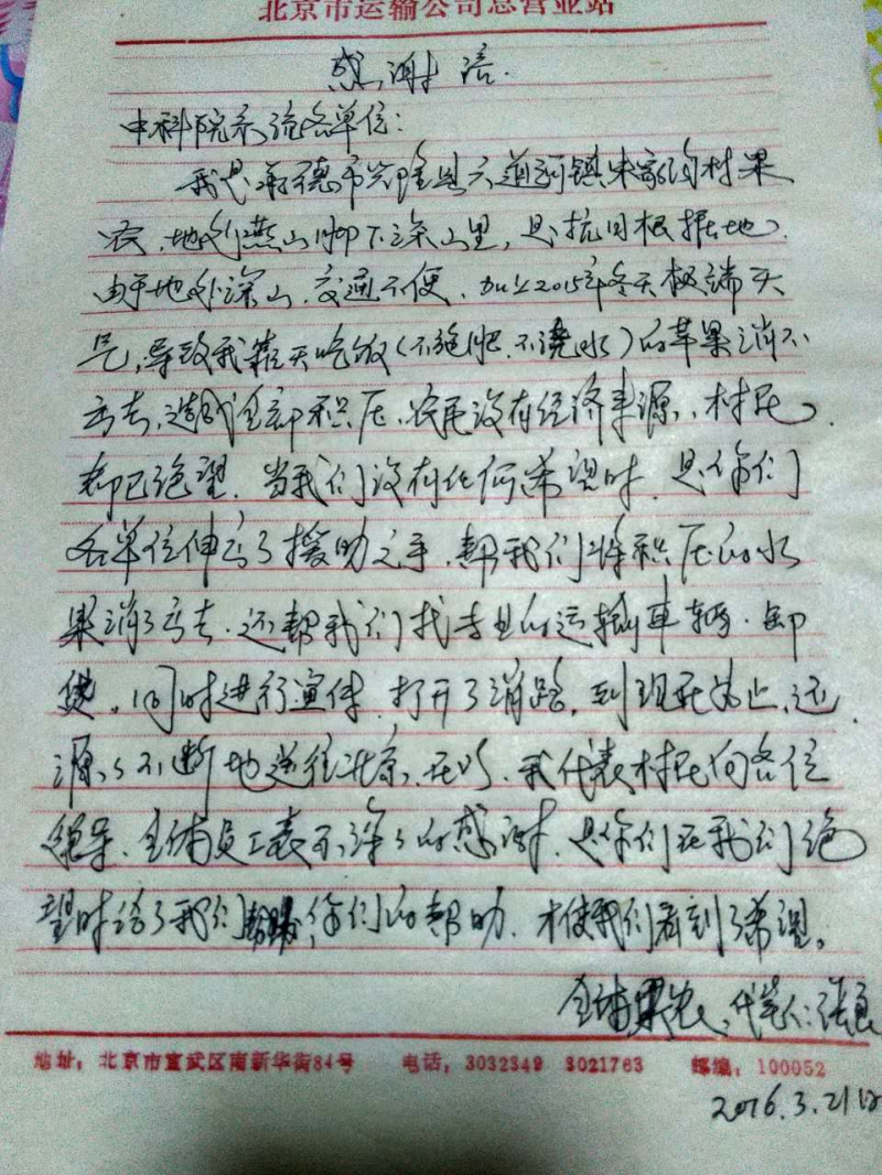 此次活动共义卖苹果一万余斤,中科集团青年志愿者们承担了联络、协调、统计、运输等大量工作,既确保了苹果的及时送达,同时也将近3万元善款一分不少地交给当地果农。朱家沟的果农们在感谢信中写到:“当村民近乎绝望时,是你们伸出援助之手,帮我们把积压的水果销售出去,让我们看到了希望,对你们表示深深的感谢。”