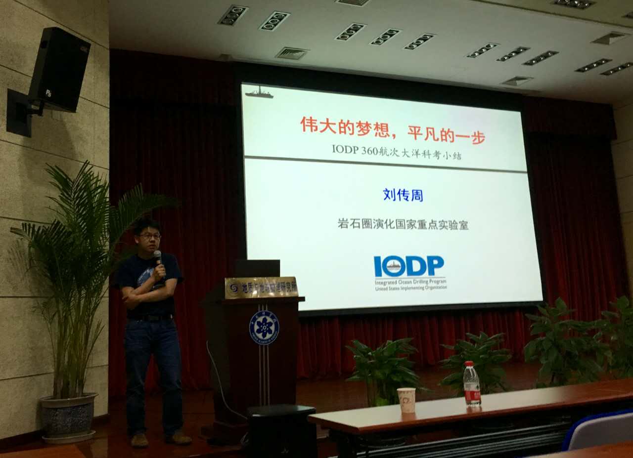 本次活动还特邀了国际大洋发现计划(IODP)中国办公室负责人拓守廷博士。他娓娓道来国际大洋发现计划及其前身的历史沿革及发展历程,着重介绍了目前国际大洋发现计划(2013-2023年)的运作模式以及美国“决心号”、日本“地球号”和欧洲“特定任务”三大平台的管理方式,详细地报告了目前中国参与国际大洋发现计划的现状及未来规划,鼓励科研工作者,特别是有志投身海洋科学研究的青年,积极申请该计划,利用国际钻探平台参与科学研究。