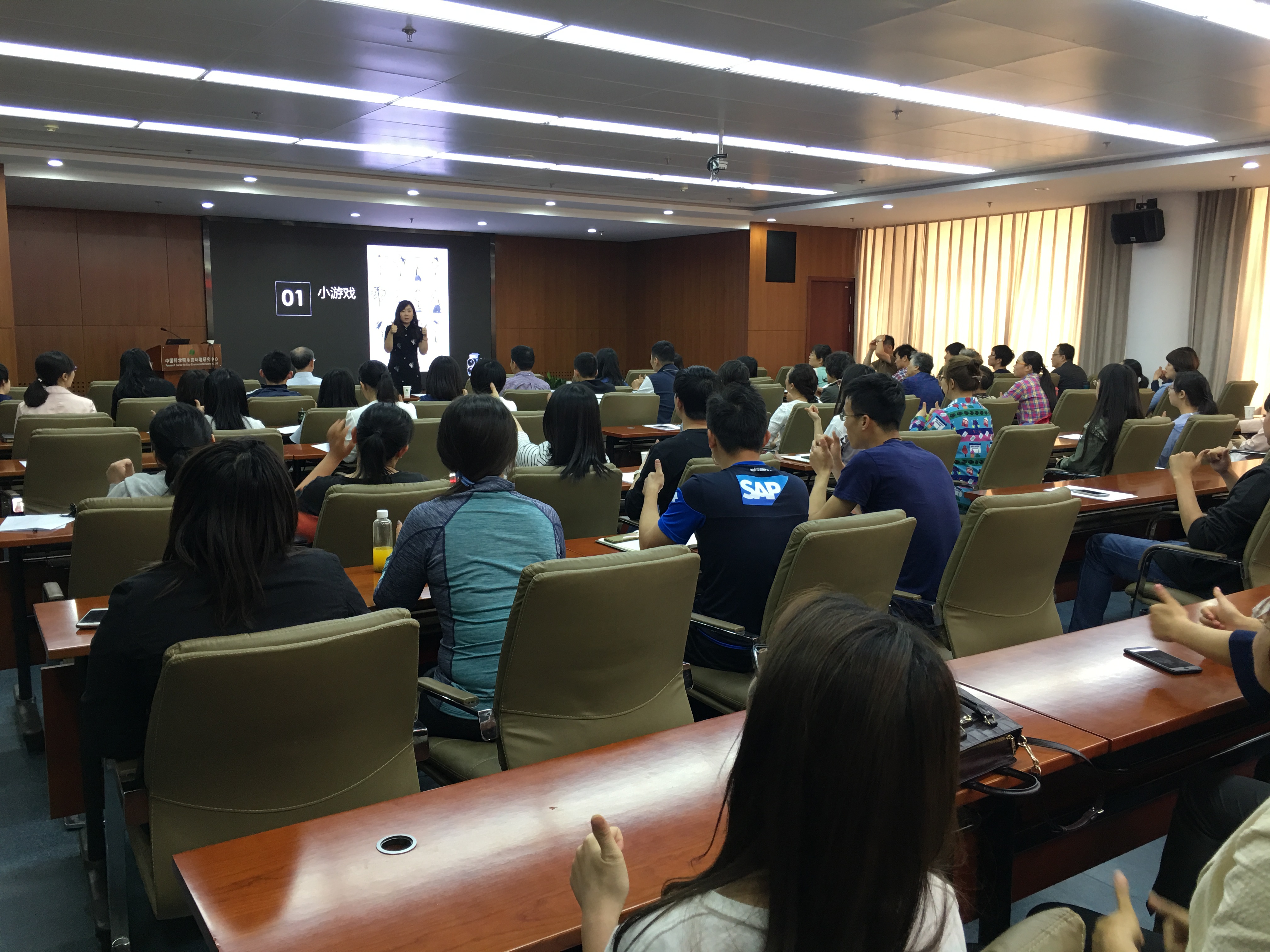 报告会邀请了中科院心理学研究所心理咨询专家黄峥副教授作了题为《人际沟通的艺术》的报告。黄峥细数生活中的微小事例为大家娓娓道来沟通之术和沟通之道,使大家得到了很多的感悟和收获。报告中黄峥还设计了互动环节,通过做小游戏的方式加强对人际沟通的认识,报告会气氛轻松、活跃。