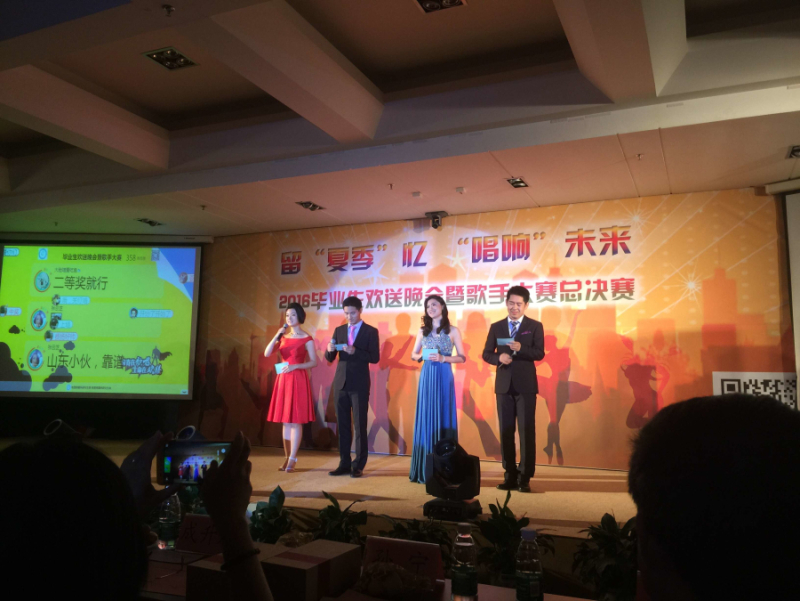 晚会在充满激情的歌曲《Empirestateofmind》中拉开序幕,强劲有力的说唱瞬间点燃了现场气氛;一曲《Tryeverything》用充满力量的演唱诠释了“勿忘初心,永不言弃”的人生信条;经典蒙古长调《鸿雁》悠远、宽广、荡气回肠,把现场带入了无边的草原;由中国矿业大学相声曲艺社表演的传统段子《学电台》带来了阵阵欢笑,同时也体现了我所与兄弟院校的文艺交流;优秀毕业生代表侯文娟带来的邓丽君的歌曲《独上西楼》唤起了在场观众对经典的回忆;裴亮老师作为助唱嘉宾带来的歌曲《一千个伤心的理由》以及由来自马来西亚的华人留学生卢敏杰带来的《Listen》凭借其丰富的舞台表现力分别把晚会带入了高潮。器乐合奏《暗香》巧妙的将东西方古典乐器相结合将现场带入了一种情思与美的意境。晚会在全体演员的合唱《启程》中落下帷幕。