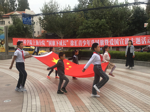 为进一步激发广大青少年“讲爱国奉献,当时代先锋”的爱国热情,弘扬以爱国主义为核心的民族精神,增强国家观念、增进民族自信心和民族自豪感,10月14日早晨,由上海团市委指导,徐汇团区委主办,中国科学院上海分院团委承办的“国旗下成长”徐汇青少年升国旗暨爱国宣讲主题活动在上海图书馆举行。近20名来自中科院上海分院系统的青少年在家长的陪同下,参与并见证了这庄严神圣的光荣时刻。