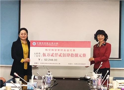 启动会上,京区事业单位妇工委与库伦旗妇联共同签署扶智专项基金合作协议,将分院各单位广大妇女干部职工捐赠的52248元作为扶智专项基金,用于开展北京分院“蓓蕾”助学计划和“春雨”关爱计划,主要用于扶助九年义务教育阶段品学兼优的贫困学子、关爱当地贫困家庭妇女,为当地妇女儿童搭建起实现梦想的平台,助力梦想腾飞、巾帼脱贫。