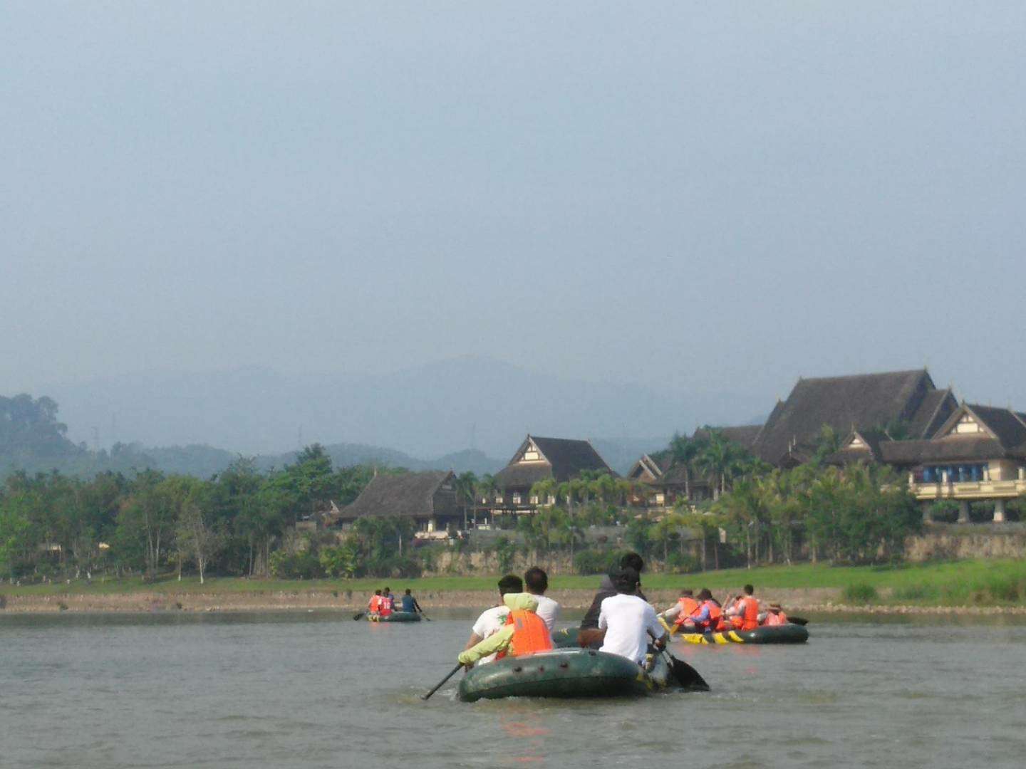 五月的罗梭江碧波荡漾,在蓝天、绿树和傣寨的映衬下,显得风情万种。上午9:30,在裁判的一声令下,各参赛队如离弦之箭,奋勇争先。沿途的浅滩、礁石、激流创造了一幅幅美好的画面,高亢嘹亮的口号在江面上不时回荡。只见7艘参赛艇在湍流中激流勇进,队员们高唱青春之歌,奋力向终点进发。经过激烈地角逐,最终由泰国、老挝、缅甸等国家的留学生组成的国际青年队以48分钟20秒的用时夺得本届比赛冠军。