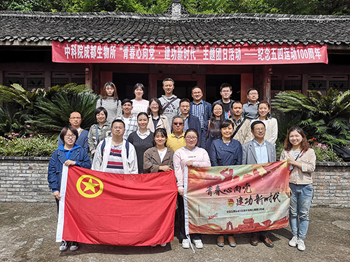 5月8日, 中国科学院成都生物研究所团委在金堂县贺麟故居举办了纪念五四运动100周年暨“青春心向党,建功新时代”主题团日活动。参加本次活动的有团委委员、青联委员、青促会成员,以及各党、团支部的支部委员等青年代表。活动邀请党委书记、副所长叶彦,科技处处长陈槐研究员,研究生部部长赵爱华,知识管理中心副主任陈振梁等莅临指导。