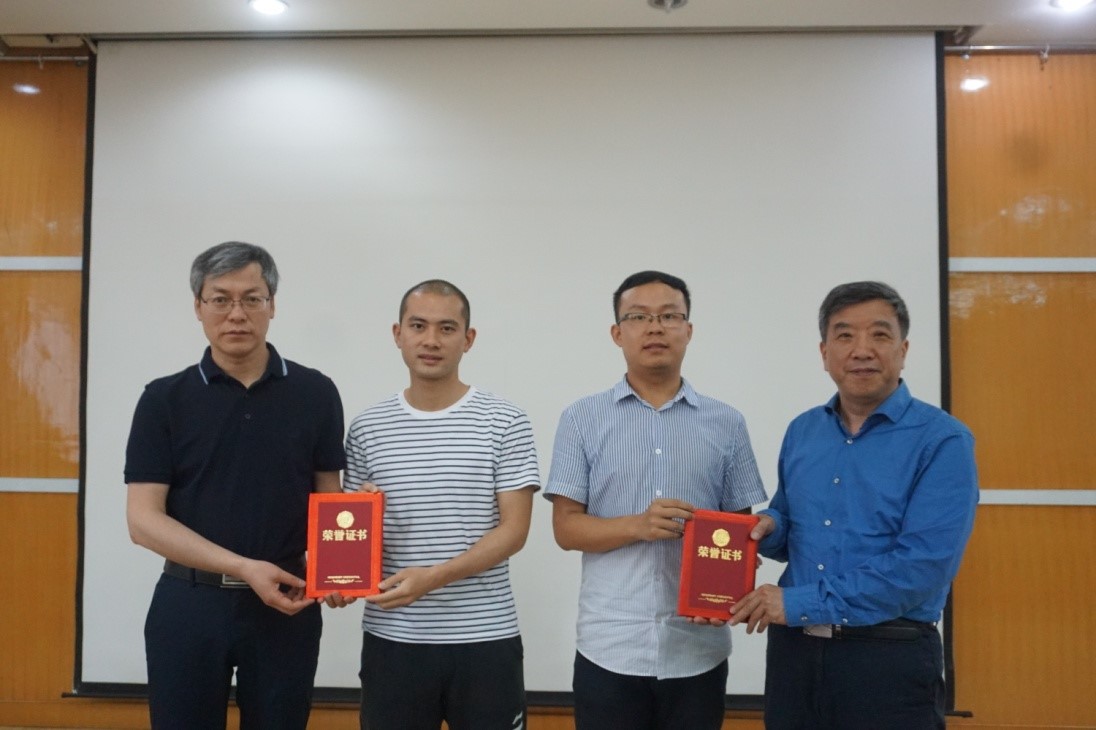 5月15日,抖音短视频制作大赛评审暨颁奖仪式在研究所科研楼301会议室举行。在评委评审环节,组委会分别展示19组参赛作品,由教师代表和学生代表组成的13位评委根据学科特点和视频特色对各组作品进行专项讨论及打分。最后,综合抖音点赞和网络投票的结果,角逐出比赛的前八名,分别授予“最佳团队奖”、“最具智慧奖”、“最佳创意奖”、“最佳表演奖”、“最佳摄影奖”、“最佳剧情奖”和“最佳评审奖”,授予其余作品“最具潜力奖”。副所长盛谦研究员和所长助理陈卫忠研究员为获奖学科组颁奖并合影留念。
