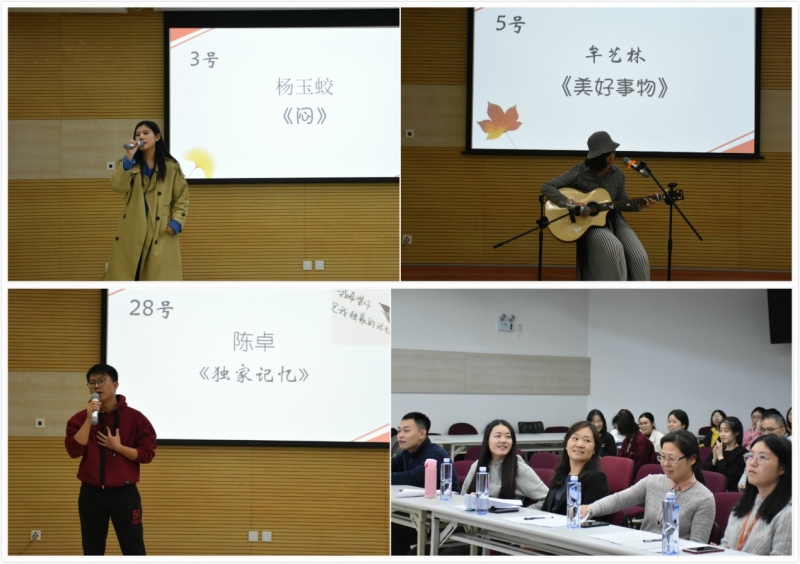 11月15日晚,第一届“植”为此刻歌王争霸赛初赛在1号楼一楼报告厅热烈开唱。初赛特别邀请联合办公室主任鞠泓老师,人事教育处副处长王晴老师,研究生部司徒春燕老师,研究生会学生代表王亚、田世龙等担任评委。比赛中,四十一位选手竞相登场、精彩纷呈。他们或以优美动感的旋律沸腾全场,或以独特的嗓音和动情的演唱触动观众的内心,或以淳朴民谣唤起大家的共鸣,或以洪亮的高音引得全场惊叹连连。经过激烈的角逐,共有十二位优胜者晋级决赛。