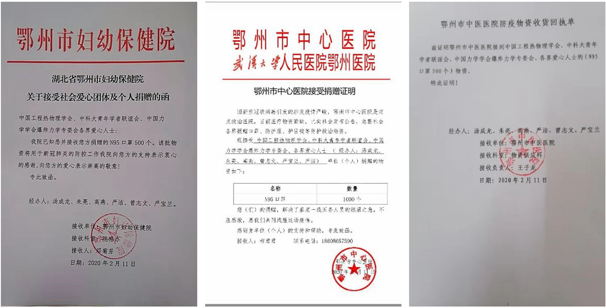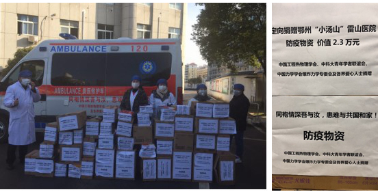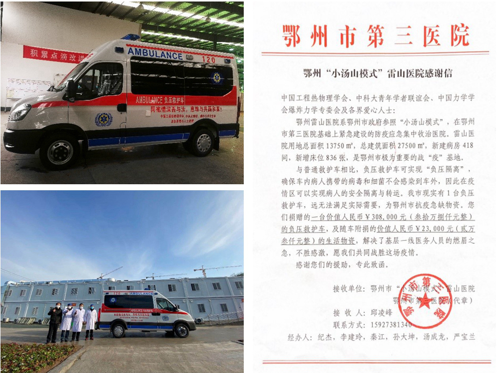 近日,中国科大青年学者联谊会联合中国工程热物理学会、中国力学学会爆炸力学专委会及社会爱心人士,紧急将捐赠的一辆负压救护车、2000只医用N95口罩和40余箱生活用品等三批抗疫急需物资分别于2月11日和16日送达湖北抗疫一线。