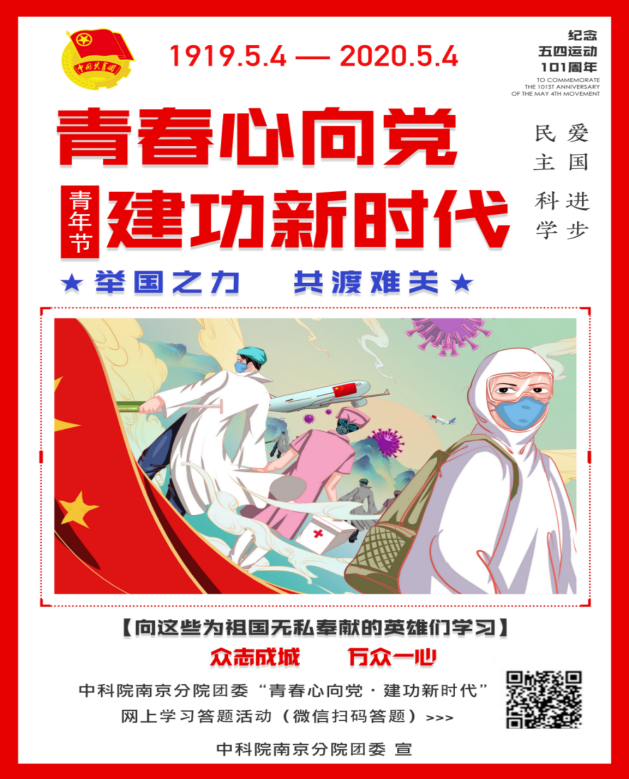 为纪念五四运动101周年,激励和引领团员青年积极投身科技创新工作,南京分院团委根据中科院团委和共青团江苏省委的工作部署和要求,以“青春心向党 建功新时代”为主题,组织开展了丰富多彩的主题活动。
